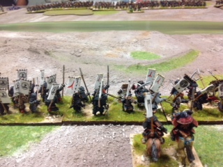 Nick's Retainers - all archers on the hill covering his left center- opposite my light infantry. |