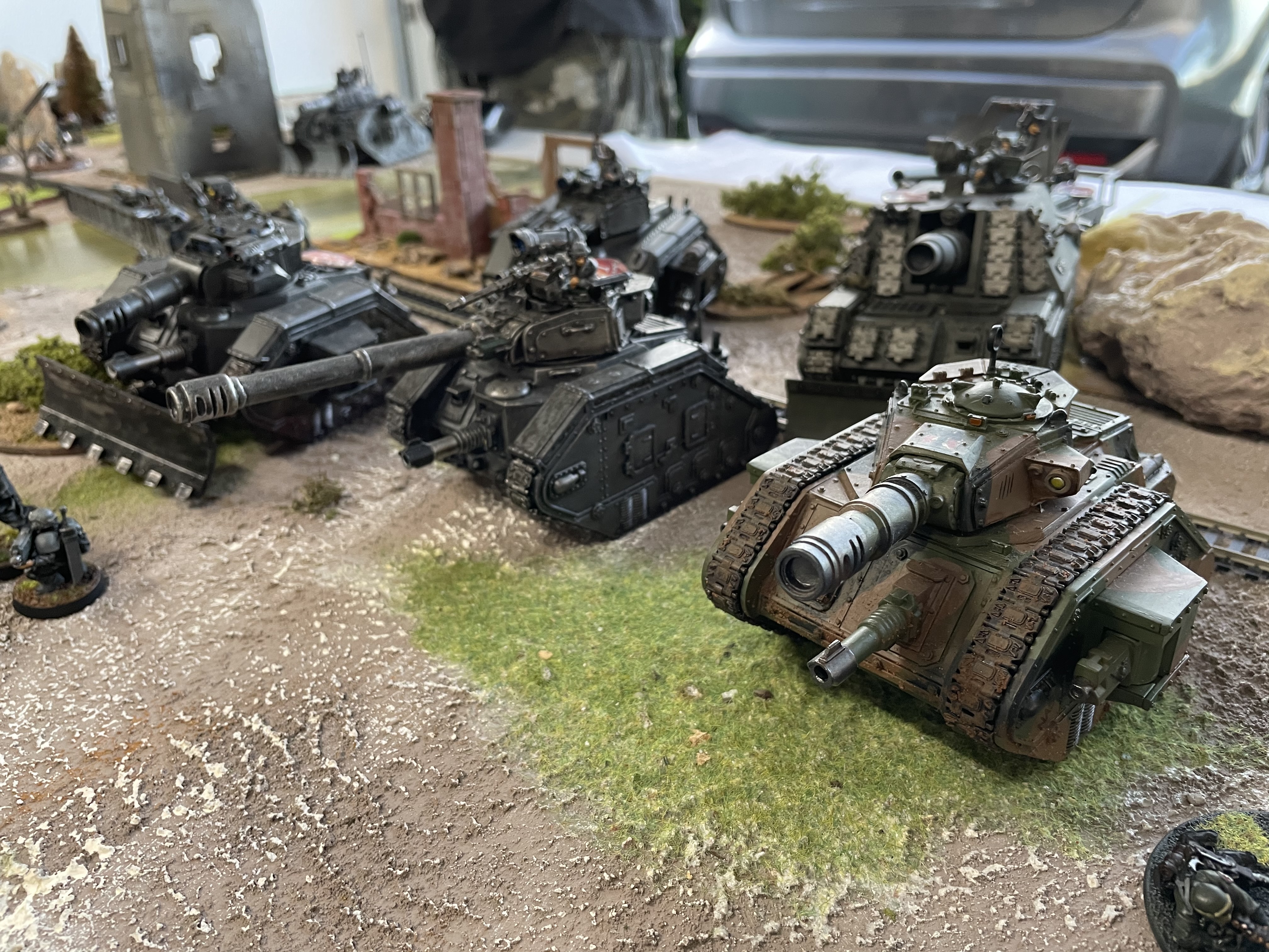 Well I don't normally post games that are Sci-Fi, but my son and his "Band of Wargame Brothers" often play 40k. I decided to join in...but got lost is a flurry of 'Sons of Nurgle' , 'Forge World', 'Power Armour', 'Saving throws', 'Invulnerable saves' and loads of dice throwing. Using a table that had been left out and slightly modified from a previous day's Spanish Civil War game.